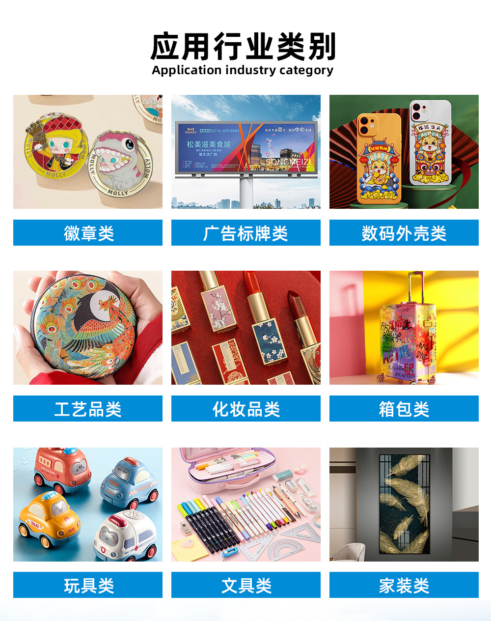 應(yīng)用行業(yè): 應(yīng)用行業(yè): 徽章、獎(jiǎng)牌、工藝品、廣告、標(biāo)識標(biāo)牌